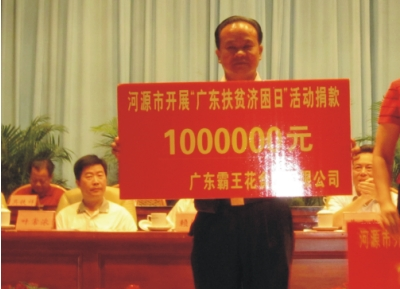 2011年6月30日上午九時,河源市2011年“廣東扶貧濟困日”活動動員暨表彰大會在河源市會議中心隆重召開。自“廣東扶貧濟困日”啟動以來我司高度重視此活動積極響應、主動捐款,在2010年扶貧濟困日中我司捐款50萬元,在會上我司“積極回饋社會,奉獻愛心”的精神受到表彰,并獲得了“萬綠杯”銀獎。 今年我司朱日楊董事長代表公司慷慨解囊,在活動現場再次捐出了100萬元。